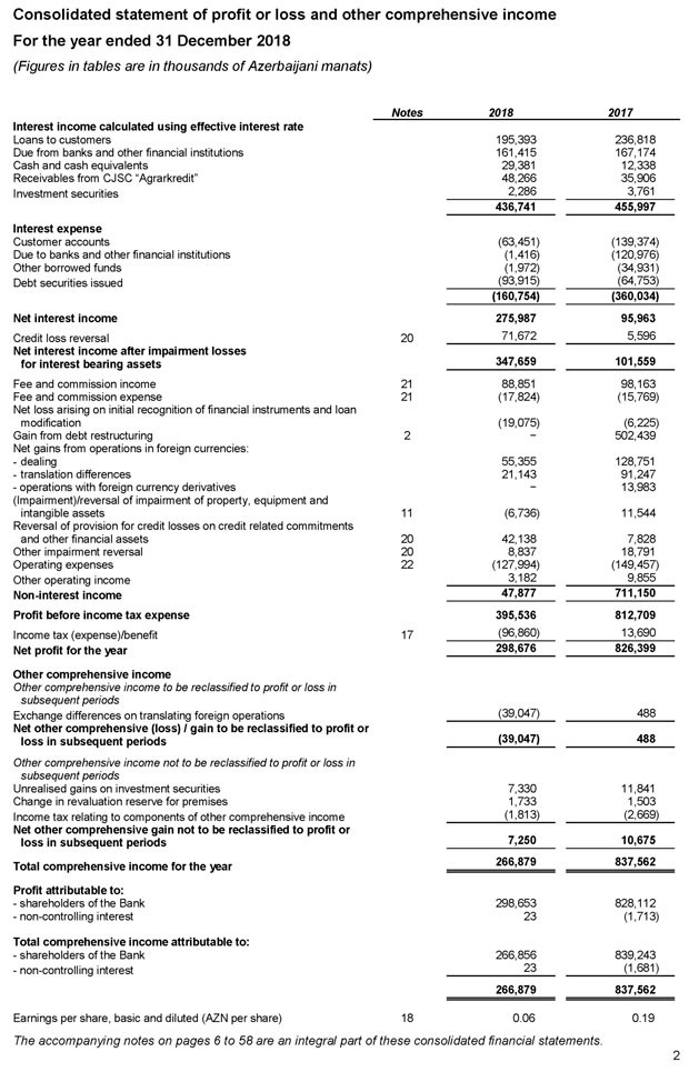 “Marja”, "Ernst & Young" auditor şirkətinin də təsdiq etdiyi maliyyə hesabatına istinadən xəbər verir ki, “Azərbaycan Beynəlxalq Bankı” qrupu 2018-ci ili 298 milyon 676 min manat xalis mənfəətlə başa vurub. Bank 2017-ci ili 826 milyon 399 min manat xalis mənfəətlə bağlamışdı. Xalis mənfəətin azalması 2017-ci ildə restrukturizasiya prosesi ilə bağlı əldə edilmiş birdəfəlik gəlirlərin 2018-ci ilin fəaliyyət nəticələrində olmaması ilə izah edilir.