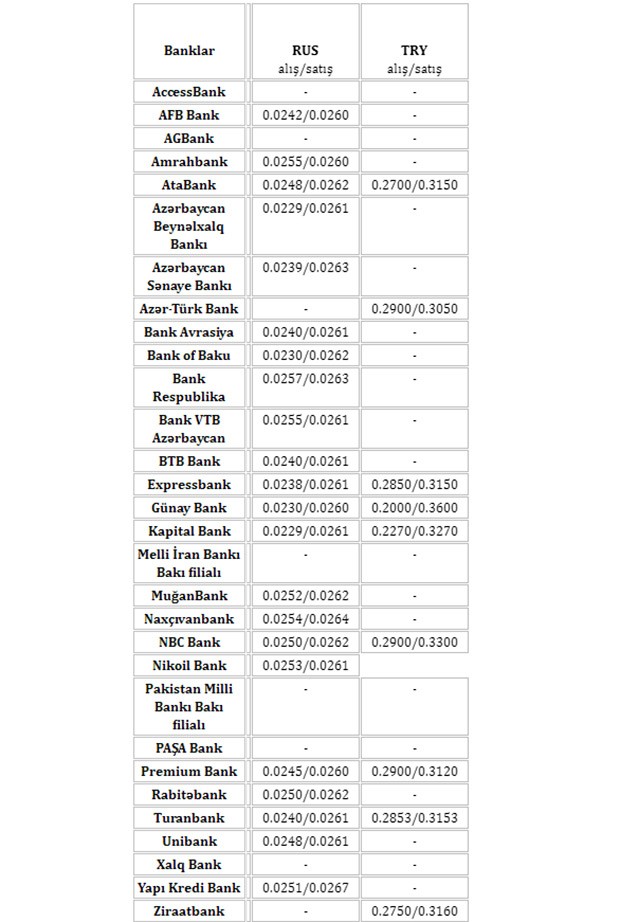 Ziraat Bank Azərbaycan | 1.6980 | 1.7025 | 1.8520 | 1.8930 |