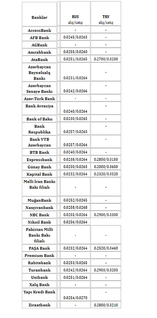 Ziraat Bank Azərbaycan | 1.6980 | 1.7025 | 1.8610 | 1.9020 |