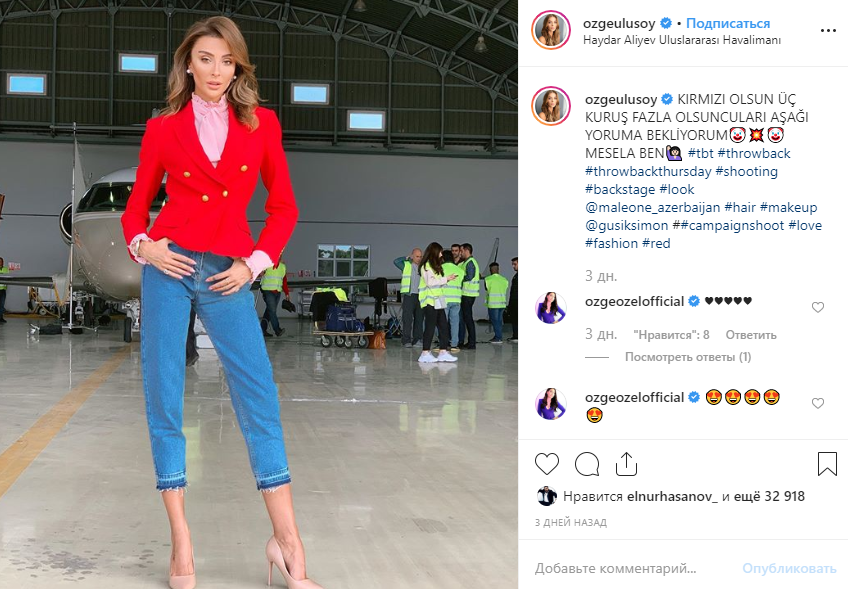 Məşhur model Özge Ulusoy reklam çəkilişi üçün Azərbaycana səfər edib. Məlumata görə, bir neçə gün bundan əvvəl Bakıda olan model tekstil markasının siması olub.
