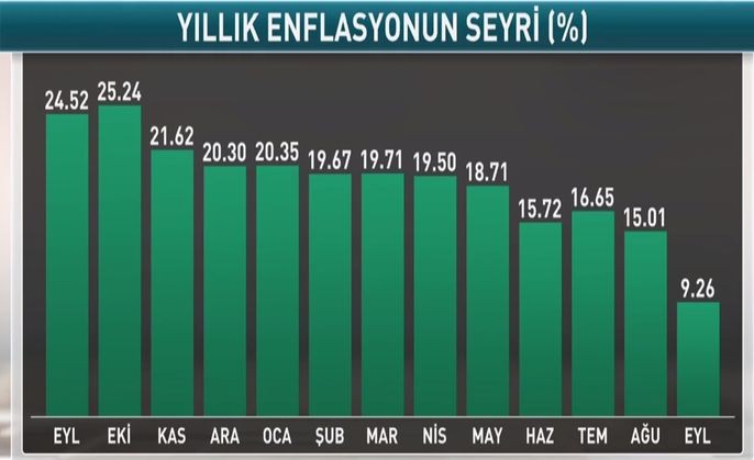 Türkiyədə istehlak qiymətləri indeksi (inflyasiya) Sentyabr ayında illik 9,26% artıb. Proqnoz 9,6% idi.
