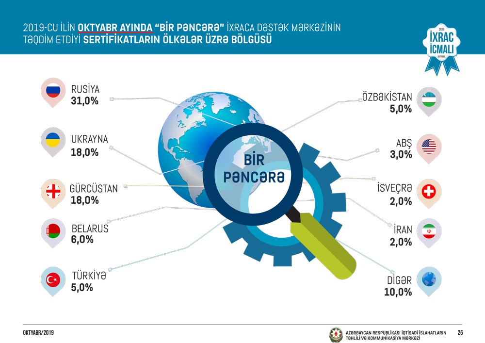 Azərbaycan Respublikası İqtisadi İslahatların Təhlili və Kommunikasiya Mərkəzinin “İxrac İcmalı”nın 2019-ci ilin oktyabr sayı təqdim olunub.