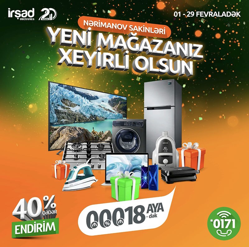 İrşad Electronics 2019-cu ildən mağazalarının konseptual dizaynını yeniləyərək, xidmət şəbəkəsini də genişləndirməyə başlayıb. Yeni ilin ilk ayında Bakının Sahil qəsəbəsində və Qəbələdə yeni konsepsiyalı mağazalar “50 hədiyyə” kampaniyası ilə qapılarını müştərilərin üzünə açıb. Hazırda bu mağazalarda yanvarın 31-dək alış-verişə sərfəli şərtlər davam edir. Mağazaların yenilənməsi və yeni mağazaların açılmasında məqsəd müştərilərə daha əlçatan olmaqla yanaşı, həm də xidmət səviyyəsini yüksəltməkdir. Yeni mağazalar da daxil olmaqla, İrşad Electronics (https://irtelecom.az/) ölkə üzrə 31 mağaza ilə müştərilərin xidmətindədir.