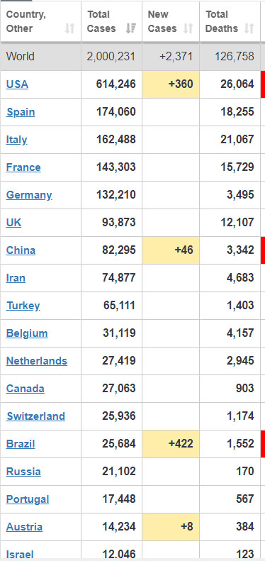 Dünyada koronavirusdan ölənlərin sayı 126 min səviyyəsini də aşaraq 126 min 758-ə çatıb.