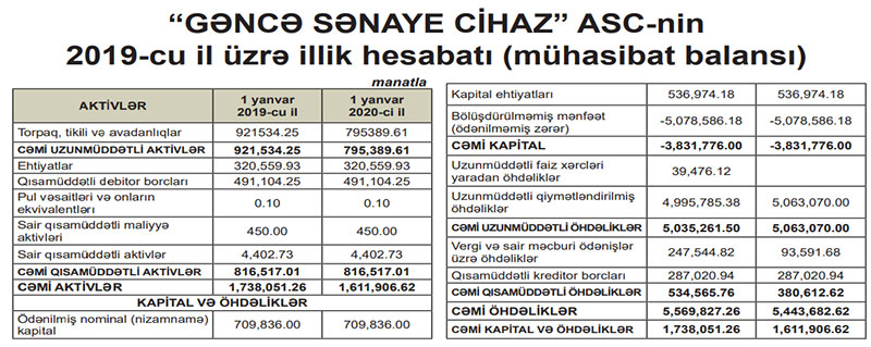 Ötən il “Gəncə Sənaye Cihaz”ın cəmi aktivləri 126 min manat azalaraq 1 milyon 612 min manata geriləyib.