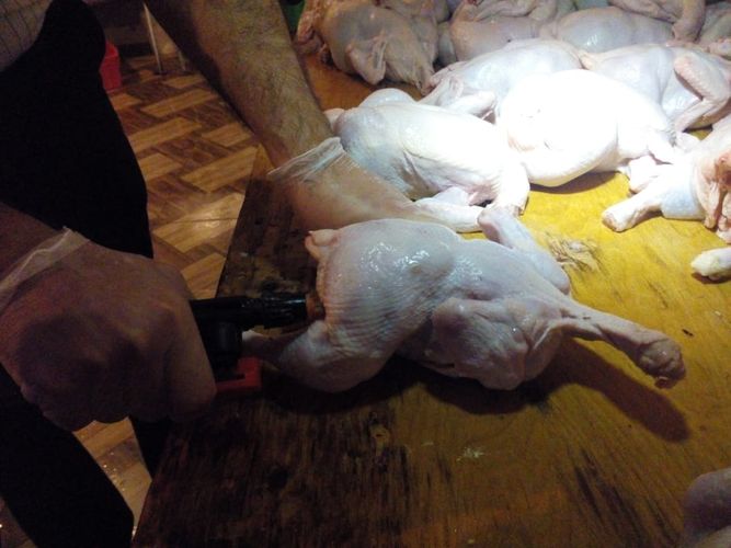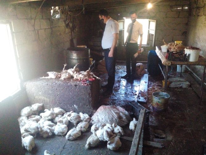 Belə ki, qanunsuz emal sahəsində heç bir texniki-normativ tələblərə əməl edilmədən kustar üsulla toyuqların kəsildiyi, daha sonra anti-sanitar şəraitdə tükdən təmizləndiyi və uzun müddət su il doldurulmuş natəmiz vannalarda saatlarla saxlanıldığı aşkarlanıb. Həmçinin baxış zamanı sexdə kəsilən toyuqların çəkisinin su ilə artıldığı müəyyənləşdirilib.