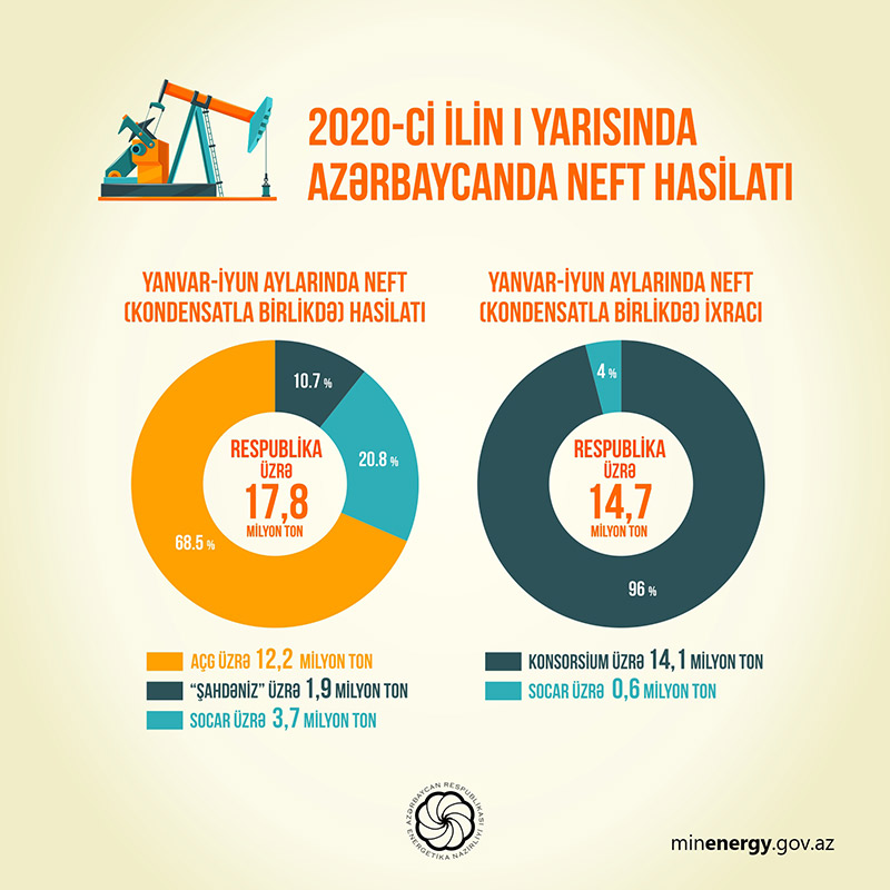 2020-ci ilin yanvar-iyun aylarında operativ məlumatlara əsasən, Azərbaycanda 17,8 milyon ton neft (kondensatla birlikdə) hasil edilib.