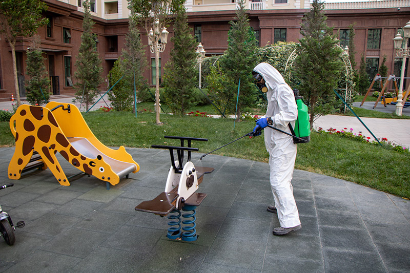 (®️) Ölkənin ən iri premium sinif yaşayış kompleksi “Renessans Palace” sakinlərini COVİD-19 virusundan qorumaq məqsədilə bütün kompleks ərazisində növbəti dəfə dezinfeksiya tədbirlərini həyata keçirib. Yaşayış kompleksinin yalnız sakinlərin ixtiyarında olan 1,5 hektarlıq həyəti, uşaq və idman meydançası, bütün blokları və mərtəbələri tam dezinfeksiya olunub.