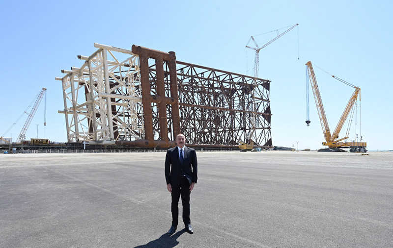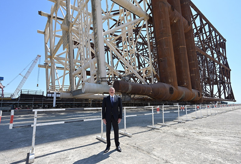 Dövlətimizin başçısı dayaq blokunun dənizə yola salınmasını bildirən düyməni basdı.