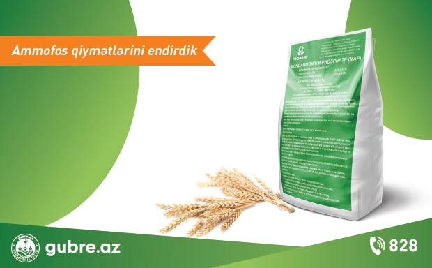 Şirkət taxıl əkini edən fermerlərin gübrəyə olan ehtiyaclarını ödəmək və daha çox taxıl sahəsini gübrə ilə təmin etmək, nəticədə fermerlərimizin daha yüksək məhsuldarlıq əldə edə bilməsi üçün ammofos gübrələrinin qiymətini 48.5 manatdan 46.5 manata endirib.