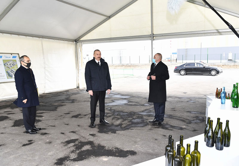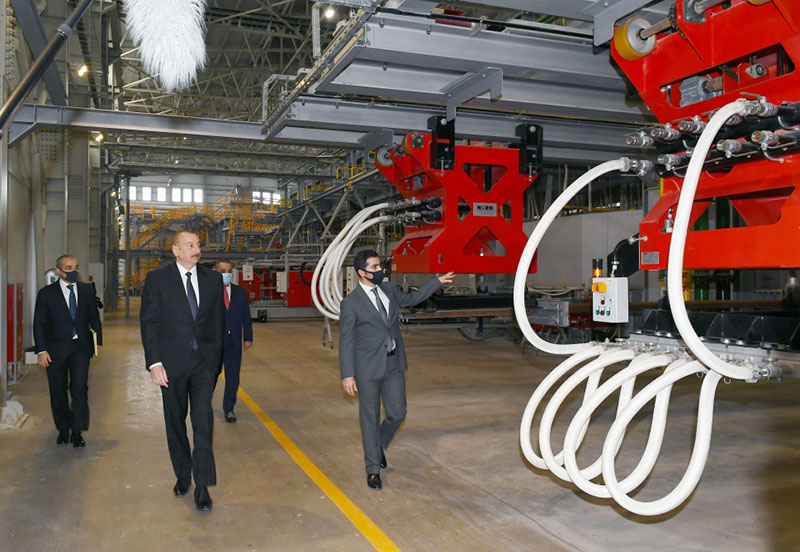 Prezident İlham Əliyev zavodun təməlini qoyub.