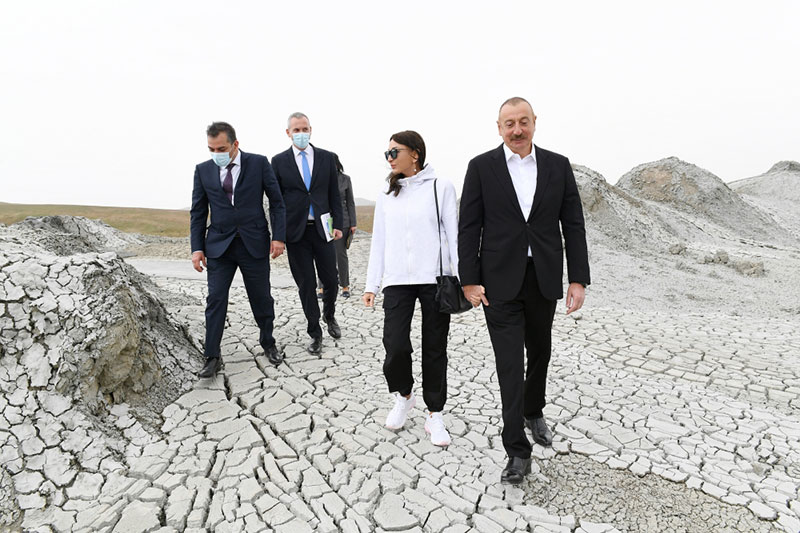 Prezident İlham Əliyev və birinci xanım Mehriban Əliyeva vulkanların yerləşdiyi ərazini gəziblər.