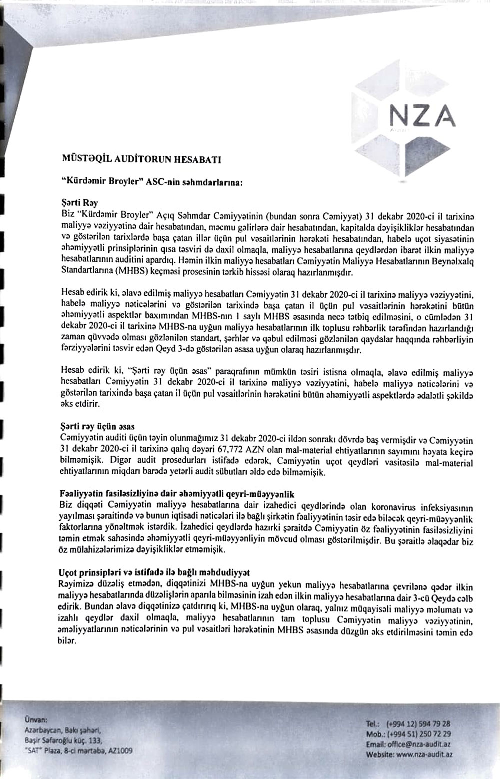 "Kürdəmir Broyler" Açıq Səhmdar Cəmiyyətinin 31 dekabr 2020-ci il tarixində bitən il üzrə ilkin maliyyə hesabatlarını və müstəqil auditorun hesabatını açıqladı.2020-ci ildə fəaliyyəti bərpa edilən “Kürdəmir Broyler” ASC maliyyə göstəricilərini açıqlayıb.