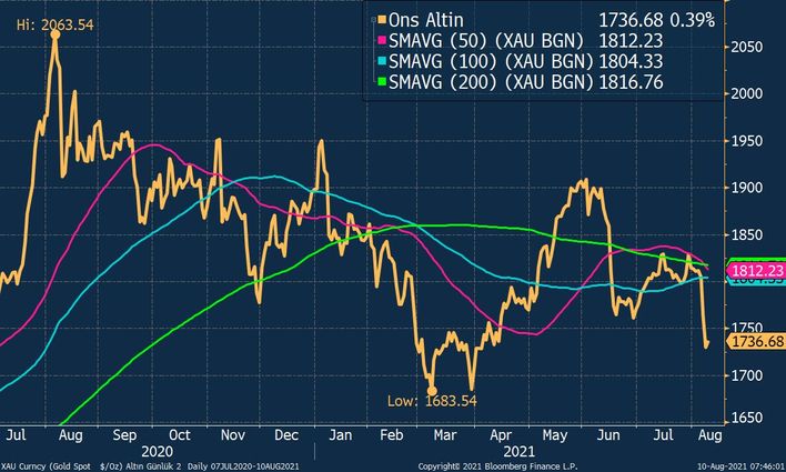Marja xəbər verir ki, unsiya qızılın 50 günlük orta qiyməti 200 günlük orta qiymətindən aşağı düşüb. Bu da qızılın qiymətinin ucuzlaşma meylinə girdiyinin bir işarəsi olaraq şərh olunur. 50 günlük orta qiymətin 200 günlük orta qiymət ilə kəsişməsi ( Bu kəsişmə "ölüm qovşağı" olaraq xarakterizə edilir ) sonuncu dəfə Fevral ayında reallaşdığında qızıl 8% ətrafında dəyər itirmişdi.