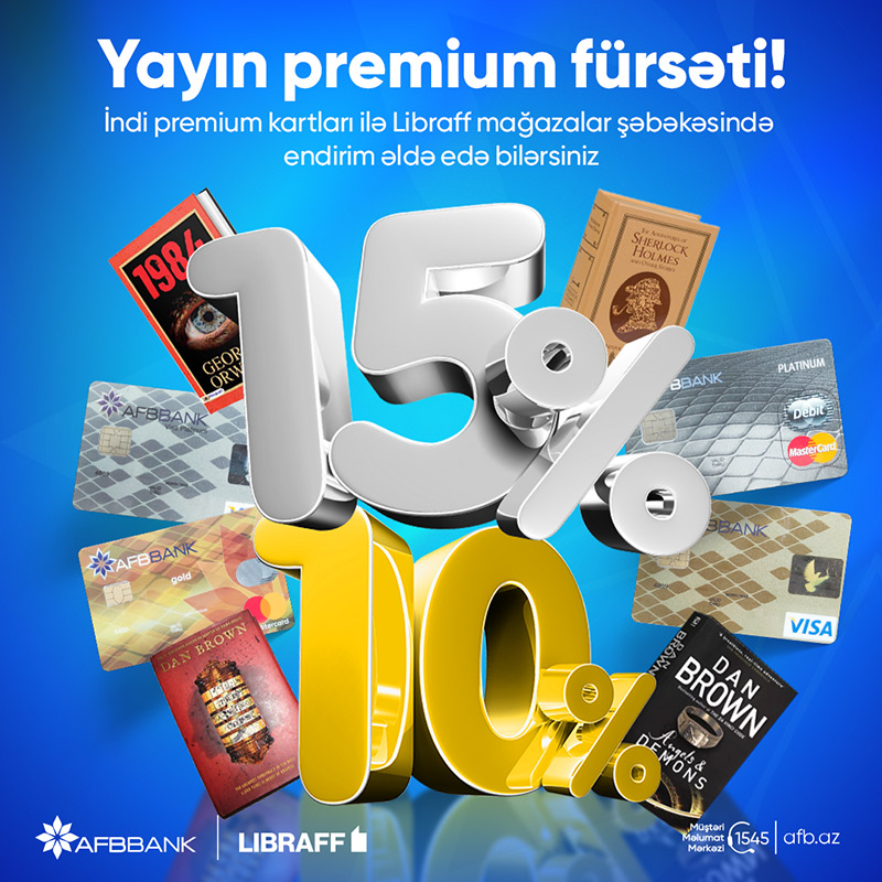 Bankın İctimai əlaqəlar üzrə əməkdaşından əldə etdiyimiz məlumata görə, AFB Bank-ın Premium kartlarını əldə etməklə dəftərxana və ofis ləvazimatlarının topdan və pərəkəndə satışı ilə məşğul olan Libraff-dan endirim qazana bilərsiniz.