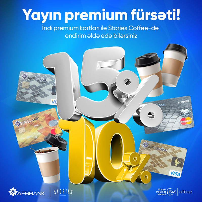 AFB Bank-ın premium kartlarını al, Libraff və Stories Coffee-dən endirim qazan!