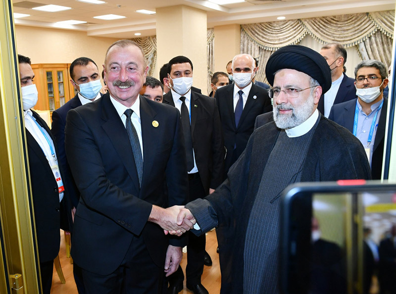 İran Prezidenti Seyid İbrahim Rəis : "İranın mövqeyi bundan ibarət idi ki, Azərbaycan Respublikasının ərazi bütövlüyünə xələl gətirilməməlidir, Azərbaycan Respublikasının ərazi bütövlüyü təmin olunmalıdır. Biz heç vaxt imkan verməməliyik ki, digərləri bizim münasibətlərimizə müdaxilə etsinlər. Biz öz məsələlərimizi özümüz həll etməliyik, "Noyabrın 28-də Aşqabadda Azərbaycan Respublikasının Prezidenti İlham Əliyevin İran İslam Respublikasının Prezidenti Seyid İbrahim Rəisi ilə görüşü olub.