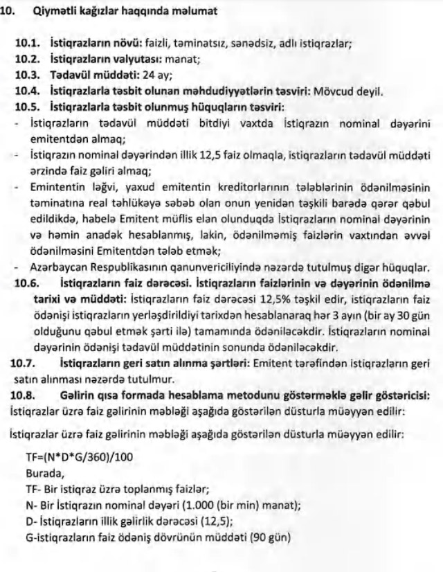 Bank olmayan kredit təşkilatı 6 milyon manat borc alır - ŞƏRTLƏR