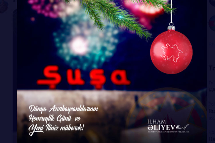 Təbrik Şuşanın fotosunun fonunda paylaşılıb.
