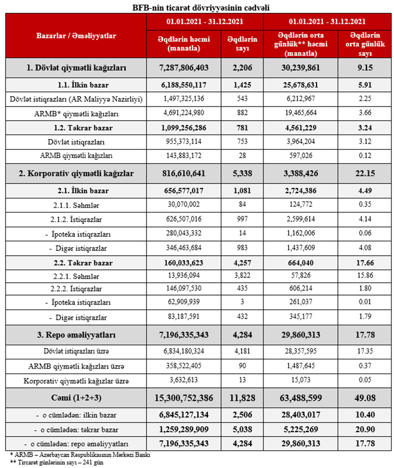 2021-ci ildə Bakı Fond Birjasında Repo əməliyyatları üzrə ticarətin həcmi kəskin artıb.