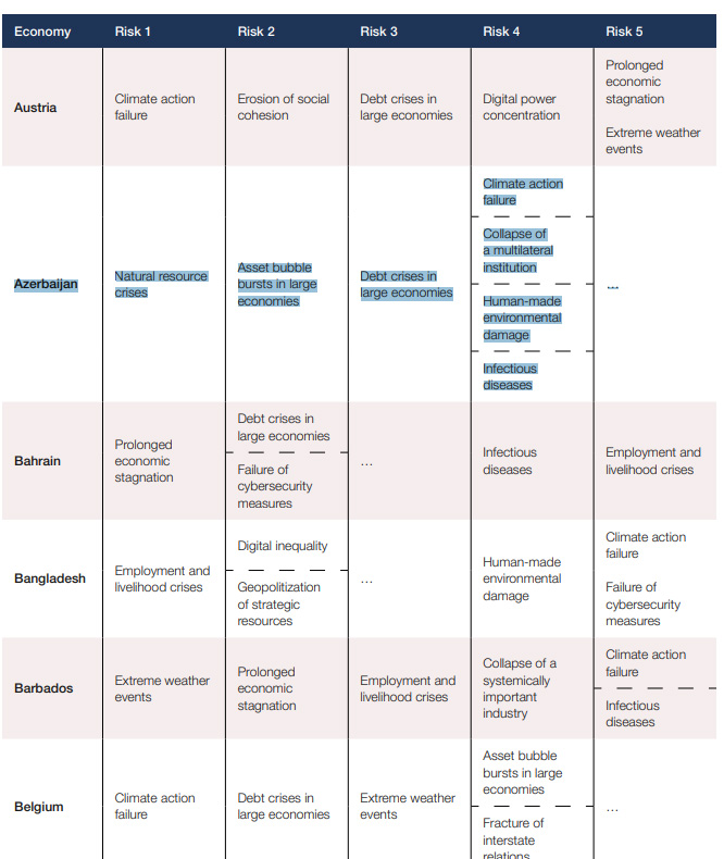 Dünya İqtisadi Forumunun "2022 Qlobal Risk Hesabat"ı dərc olunub.