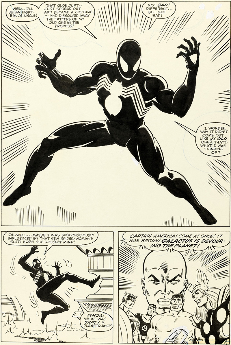 Məlumata görə, illüstrasiya 1984-cü ilə aiddir. Rəssam Mayk Zek məşhur komiks personajını ilk dəfə qara kostyumda təsvir edib.