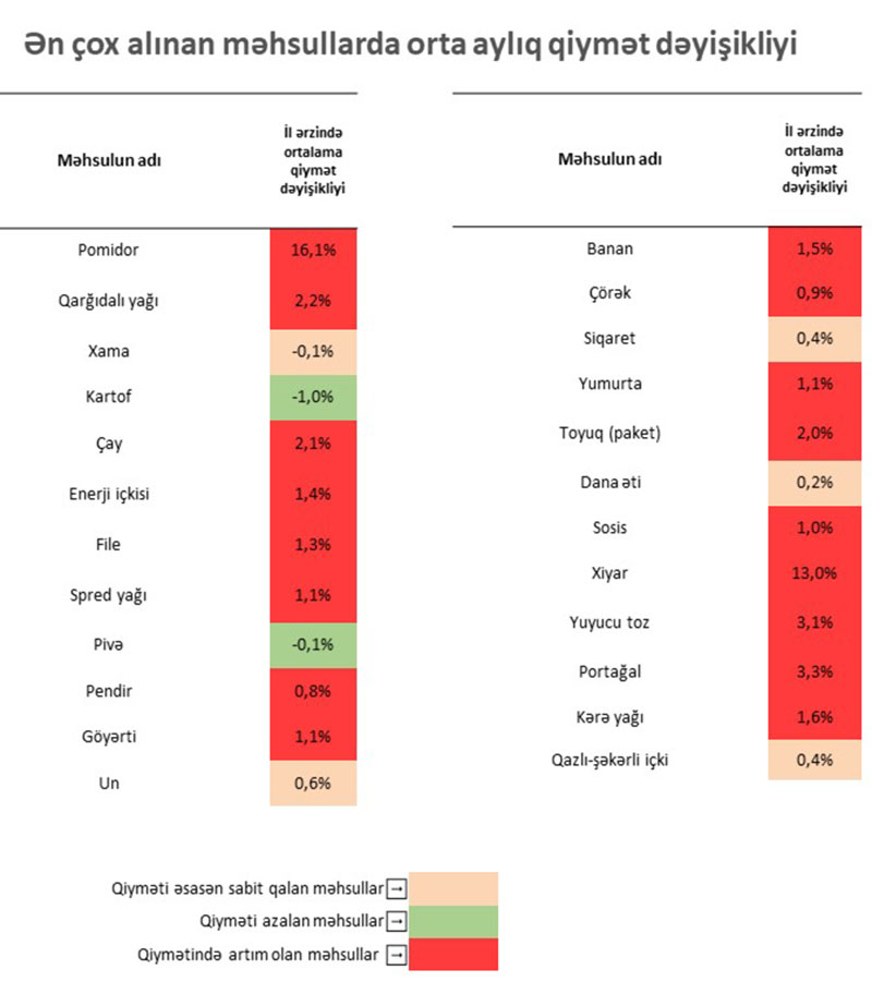 Məhsul qiymətlərində illik dəyişikliklər açıqlanıb