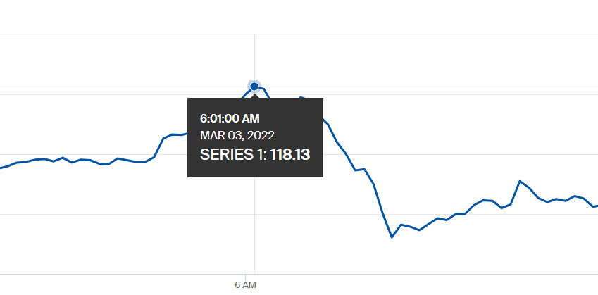 Marja xəbər verir ki, Brent nefti təxminən 11,7% bahalaşaraq 117,38 dollara, ABŞ xam nefti (WT) isə 10,5% bahalaşaraq 114.33 dollara yüksəlib.