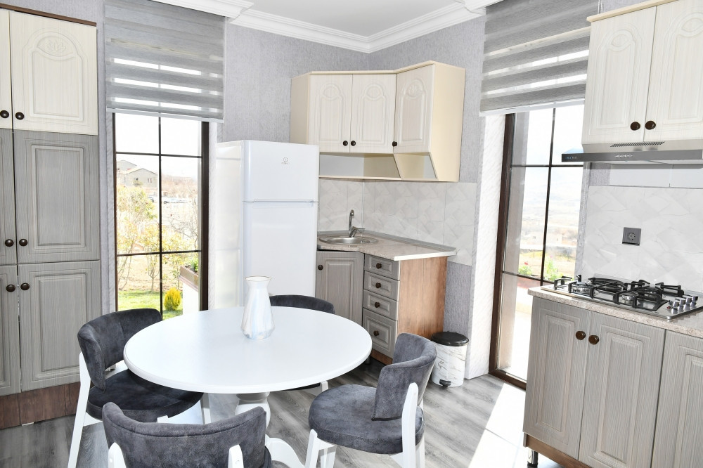 Evin otaqları yüksək səviyyədə və müasir dizaynla bərpa olunub. Həyətyanı sahə abadlaşdırılıb, ərazidə ağaclar əkilib. Fərdi evlərin yerləşdiyi məhəlləyə işıq və su xətləri çəkilib, yola asfalt örtüyü döşənib.