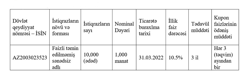 İstiqrazlarla bağlı məlumatlar aşağıdakı kimidir:
