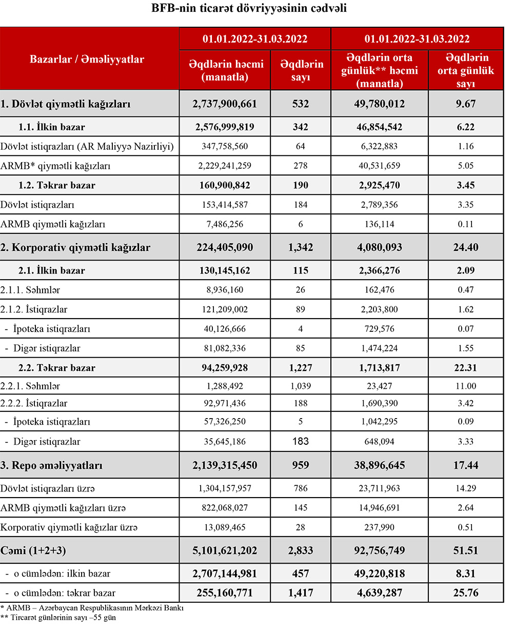 Dövlət istiqrazları ürə təkrar bazarın həcmi 238 milyon 975 min manatdan 153 milyon 415 min manata geriləyib.