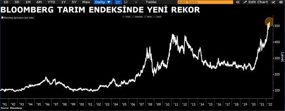 Dünya “buğda müharibəsi” konsepsiyasını müzakirə edərkən, qlobal kənd təsərrüfatı məhsulları qiymətlərində artım tempi davam edir. Bloomberg Kənd Təsərrüfatı İndeksi rekord həddə çatıb.Rusiya-Ukrayna müharibəsi ilə başlayan kənd təsərrüfatı qiymətlərindəki artım Hindistanın buğda ixracına qadağa qoyması qərarı ilə daha da sürətlənib.