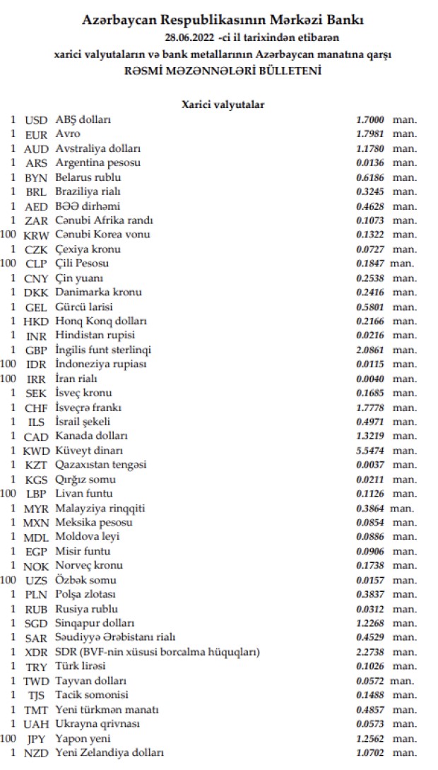 Dolların bazar ertəsi üçün rəsmi məzənnəsi müəyyən edilib