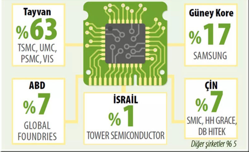 Marja xəbər verir ki, iki ölkə arasında gərginliyin episentri olan Tayvan dünya çip istehsalının 60 faizini təmin edir. Dünyanın ən böyük iki çip istehsalçısı Tayvan Yarımkeçirici İstehsalat Şirkəti (Taiwan Semiconductor Manufacturing Company -TSMC) və United Microelectronics Corporation (UMC) Tayvanda yerləşir. Təkcə TSMC dünya çip istehsalının 54 faizini qarşılayır.