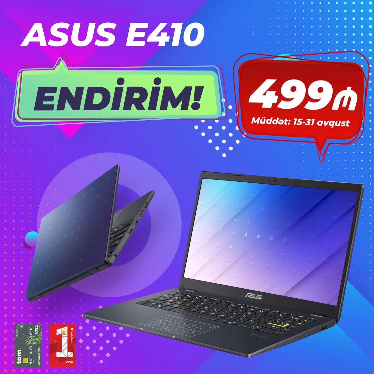 ASUS modelləri 499 AZN-dən başlayan qiymətlərlə satılır.