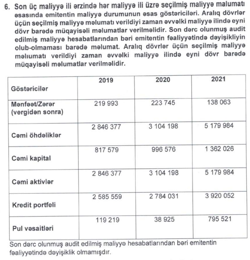 "Kəpəz Bank Olmayan Kredit Təşkilatı" MMC 1 milyon manatlıq istiqraz buraxır.