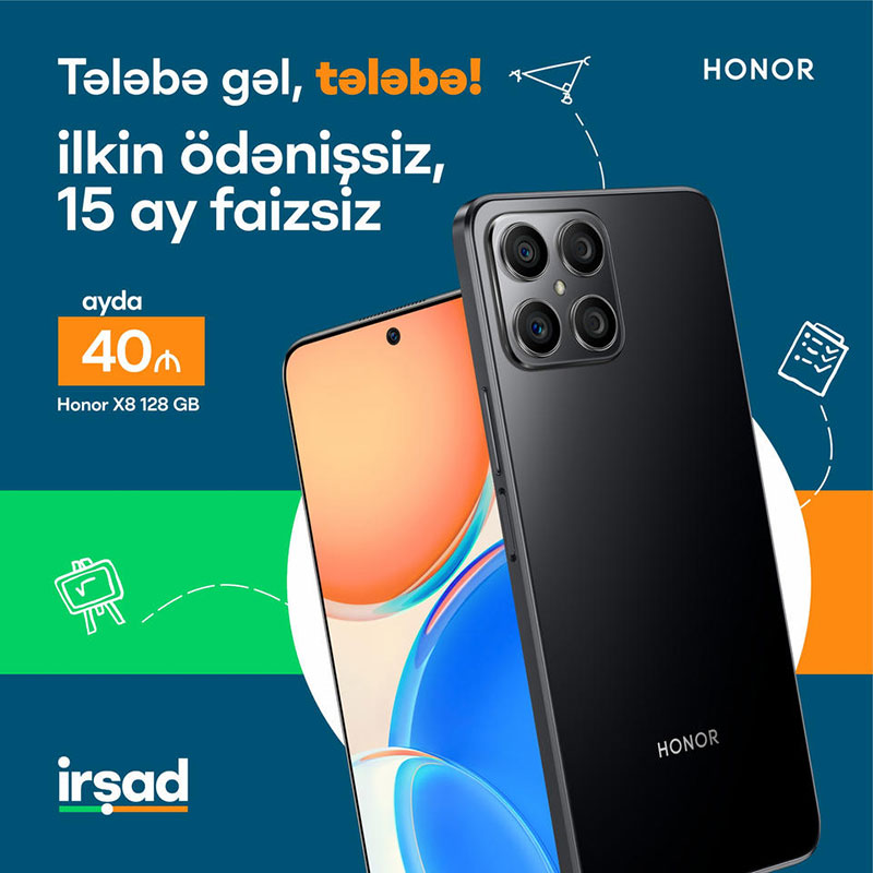 Artıq uzun müddətdir müstəqil brend kimi fəaliyyət göstərən Honor brendinə məxsus X8 smartfonu çox sevilən modelə çevrilib. Google play stroe-u sahib olan, Google Play servislərini dəstəkləyən Honor brendi bu smartfonu büdcəsinin üstündə parametrlərlə bazara təqdim edib. Şərtlərinin sərfəli olması da smartfonu daha da əl çatan edir. Belə ki, ilkin ödənişsiz, faizsiz şərtlər bu smartfonu 15 sentyabradək ayda 40 manat ödəməklə 15 aya əldə edirsiniz. Övladınızdan hər daim xəbər tutmağınız üçün əla seçimdir.