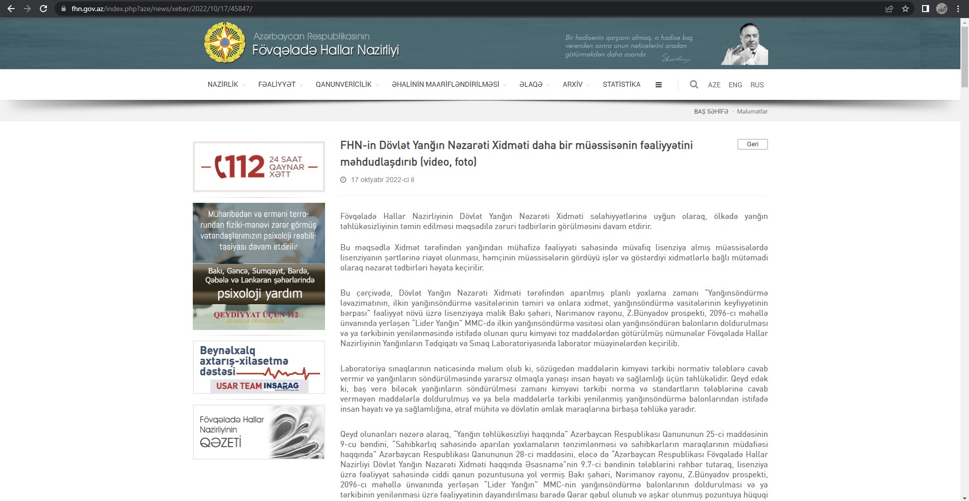 “Lider Yanğın”: Fövqəladə Hallar Nazirliyinin yaydığı məlumatın heç bir hüquqi əsası yoxdur