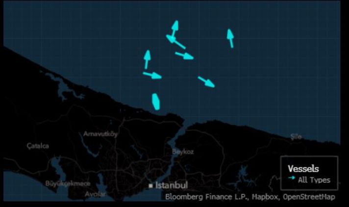 Marja Bloomberg-ə istinadən xəbər verir ki, bu səbəbdən də Boğazın şimalında Rusiya və Qazaxıstan neftini daşıyan gəmilərin toplandığı görünür.