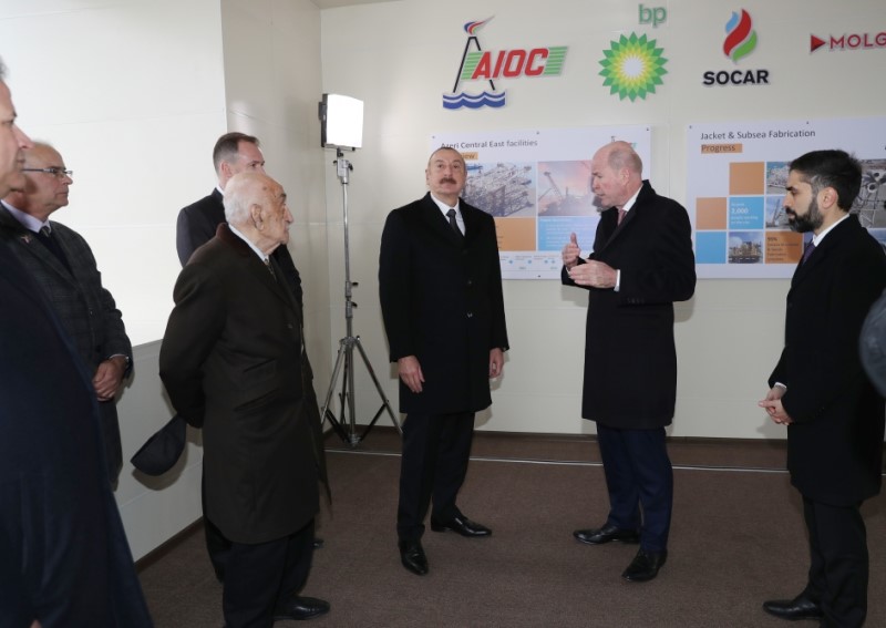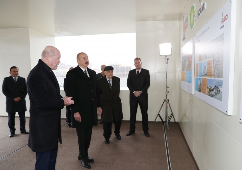 Sonra Prezident İlham Əliyev, SOCAR-ın birinci vitse-prezidenti Xoşbəxt Yusifzadə və BP-nin regional prezidenti Qəri Counz dayaq blokunun dənizə yola salınmasını bildirən düyməni basdılar.