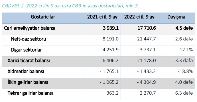 Marja.az xəbər verir ki, bu, Mərkəzi Bankın 2022-ci ilin 9 ayı üzrə Tədiyə balansında bildirilir.