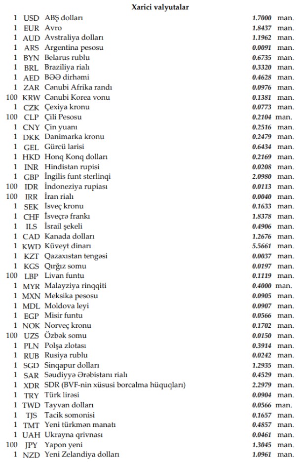 Rəsmi məzənnələr açıqlandı