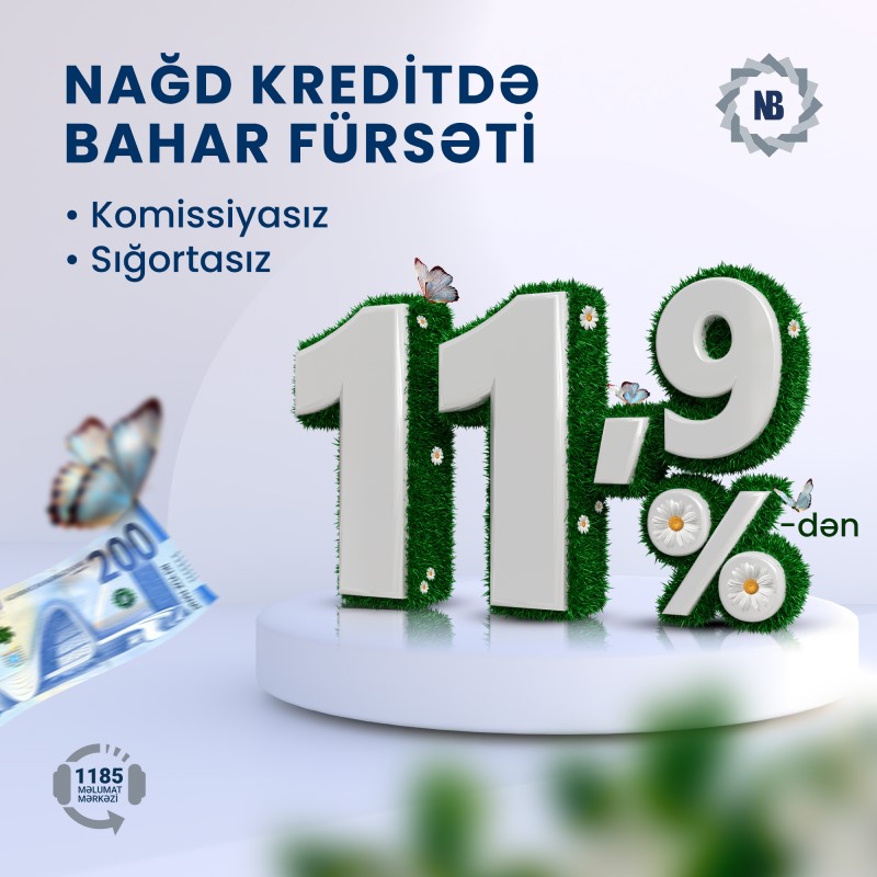 İndi nağd pul kreditini 11,9%-dən başlayan illik faiz dərəcəsi ilə, 48 ayadək, üstəlik sığortasız və komissiyasız şərtlərlə əldə edə bilərsiniz! Kampaniya 31 mart tarixinədək keçərlidir.