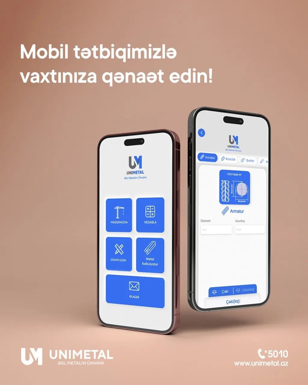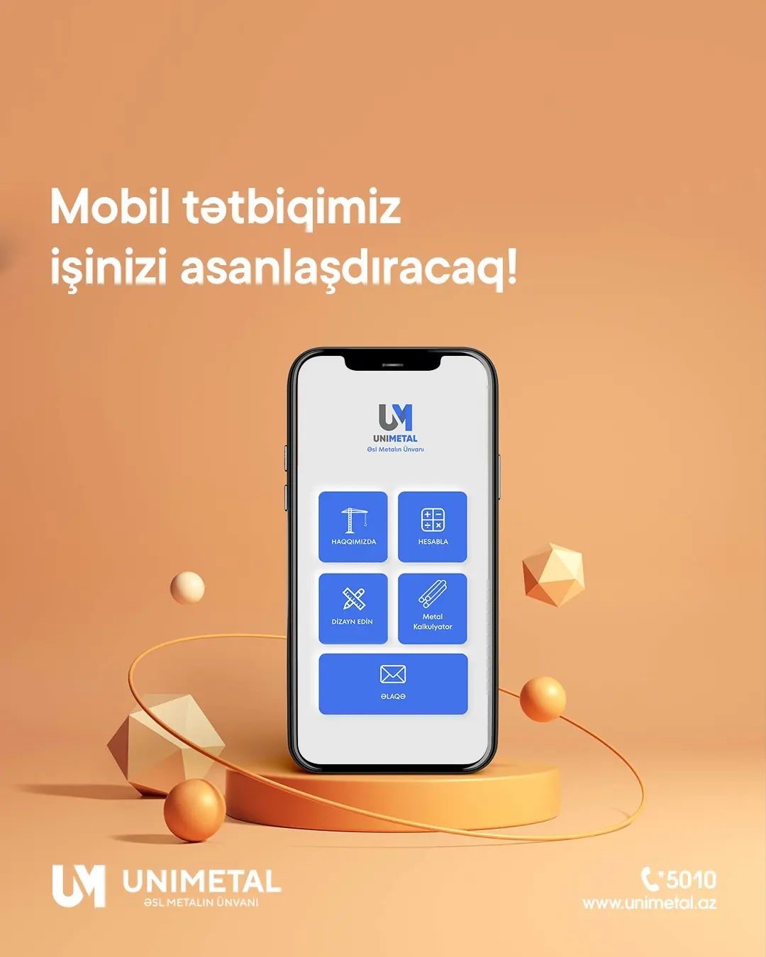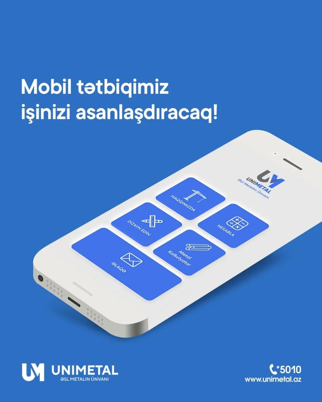 Mobil tətbiqi yükləmək üçün link - https://www.unimetal.az/download-app