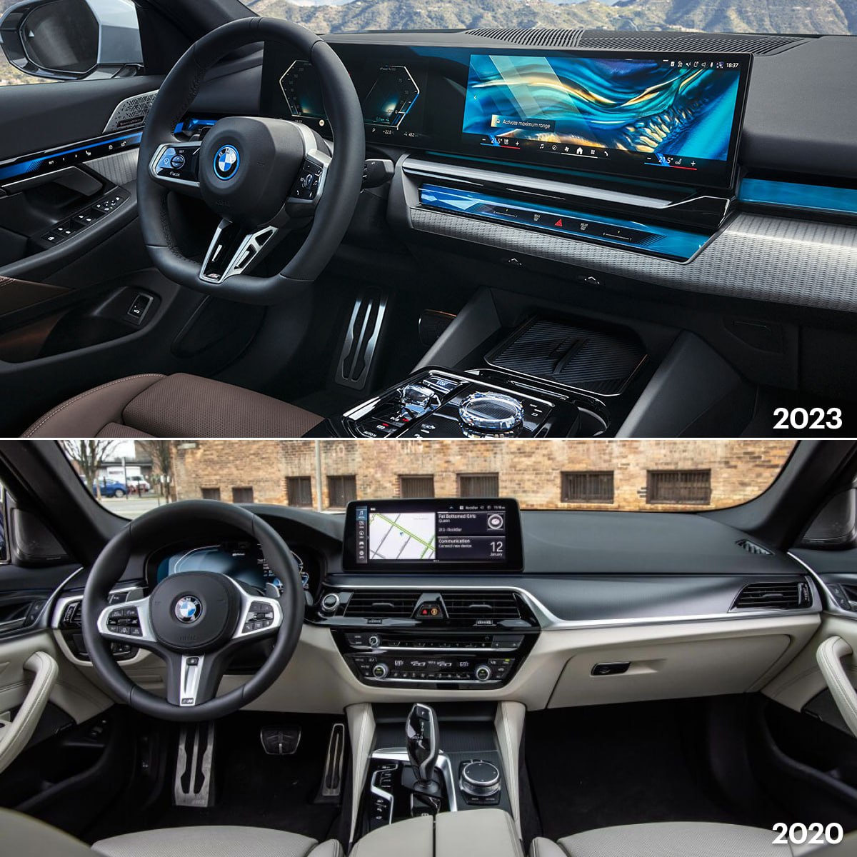 Yeni sedanın interyeri sələfinin interyerindən nəzərəçarpacaq dərəcədə fərqlənir, ilk növbədə - indi cihazlar paneli iki displeydən ibarətdir: alət və idarəetmə. İkincisi, BMW ənənəsinə uyğun olaraq, sürücüyə doğru bir az çevrilir.