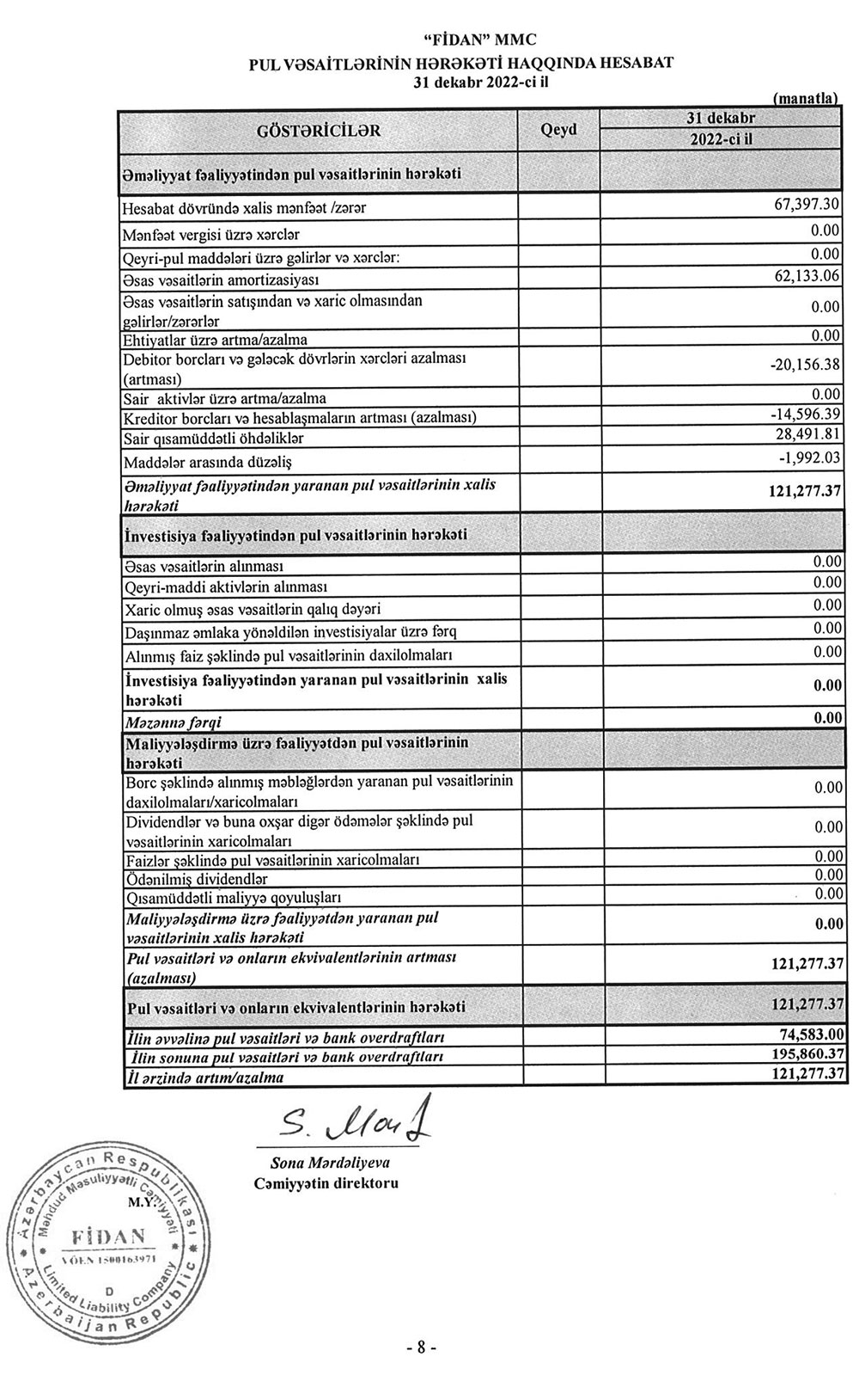 Sərnişindaşıma fəaliyyətilə məşğul olan "FİDAN" MMC-nin 31 dekabr 2022-ci il tarixində bitən il üzrə maliyyə hesabatları.