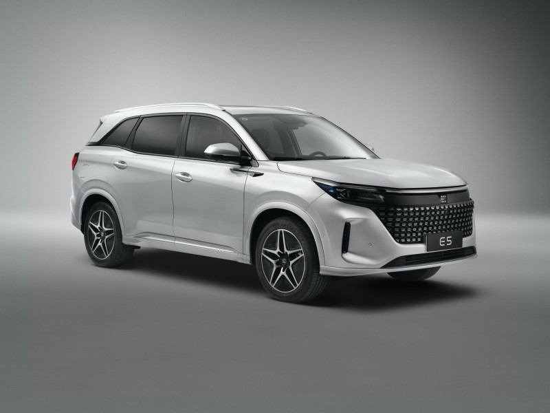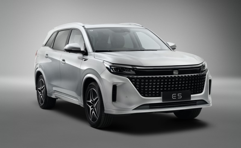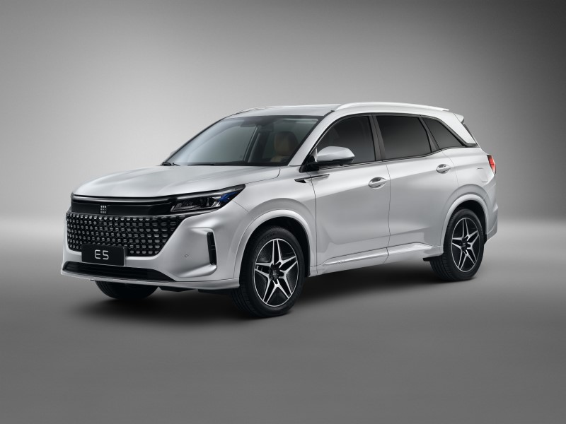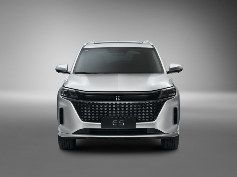 Sözügedən modeldə bütövlükdə sadə dizayn üslubuna üstünlük verilib. Belə ki, 4760 mm uzunluğunda olan E5 SUV avtomobilinin eni 1865 mm, uzunluğu isə 1710 mm-dir. Avtomobil 7 nəfərlik olmaqla 5+2 dizayn quruluşuna malikdir. Əlavə olaraq, qabaq oturacaqlar arxaya 165 dərəcə qatlana bilir və əlavə yer təmin etmək üçün ikinci və üçüncü sıraların alternativ formalara salınması mümkündür. Alternativ formalar avtomobilin baqajının daha geniş olmasına şərait yaradır. Həmçinin avtomobildə 360 dərəcəlik kamera, 1,5 atmosfer gücünə malik mühərrik və həmçinin naqilsiz enerji yığmaq funksiyası mövcuddur.