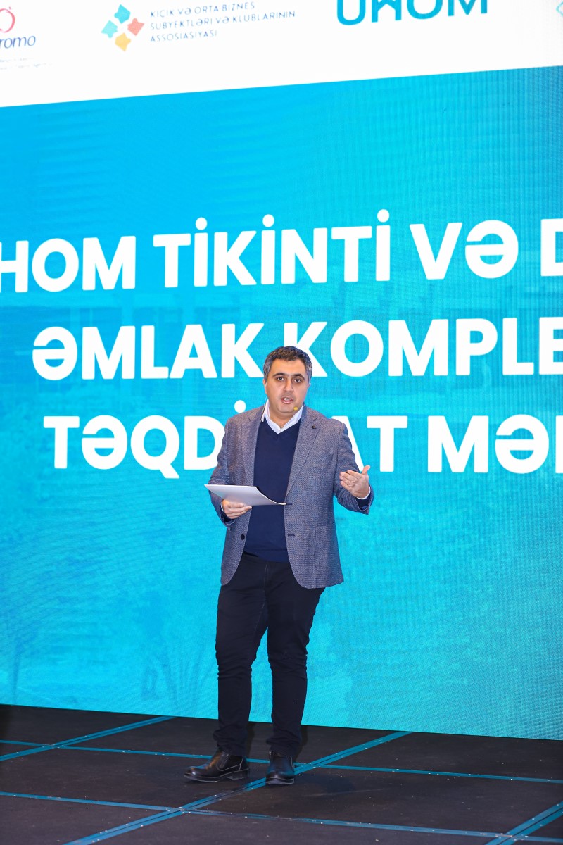 Layihənin təqdimat mərasiminin açılış nitqini Kiçik və və Orta Biznes Subyektləri və Klublarının Assosiasiyası sədri Nigar Ələsgərova edərək “UHOM”un fərqliliyinə diqqət çəkibi, inşaatdan tutmuş məişət texnikasınadək bütün markalar üzrə məhsulların bir məkanda yerləşəcəyini vurğulayıb.