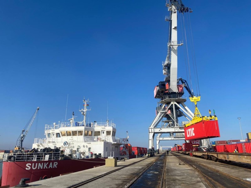 Çinin Sian şəhərindən yola çıxan 55 ədəd 40 futluq konteynerdən ibarət olan blok qatarı Qazaxıstanın Aktau limanından “Sunkar” fider gəmisi (konteynerdaşıyan) vasitəsi ilə Bakı Limanına çatdırılıb.
