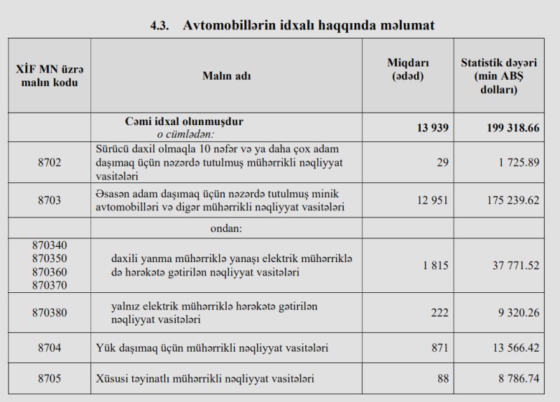 2023-ü ilin ilk 2 ayında Azərbaycana 199 milyon 319 min dollar dəyərində 13 min 939 ədəd avtomobil idxal edilmişdi.